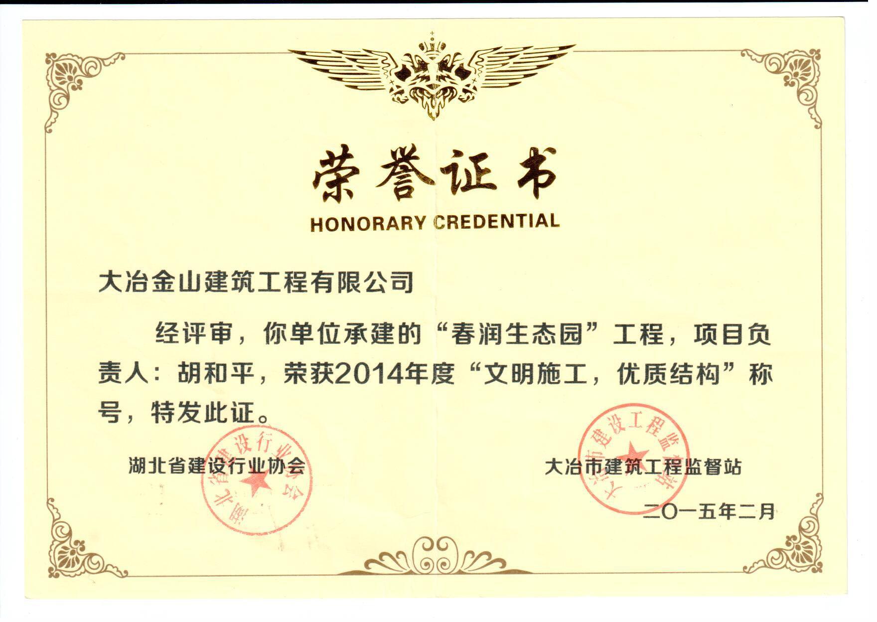 大冶金山建筑工程有限公司是一家專業(yè)從事建筑安裝總承包、園林古建筑、園林綠化景觀工程、文物修繕、市政道路工程、鋼結(jié)構(gòu)工程等綜合型施工企業(yè),公司具有資本投資運(yùn)營(yíng)合作實(shí)力。